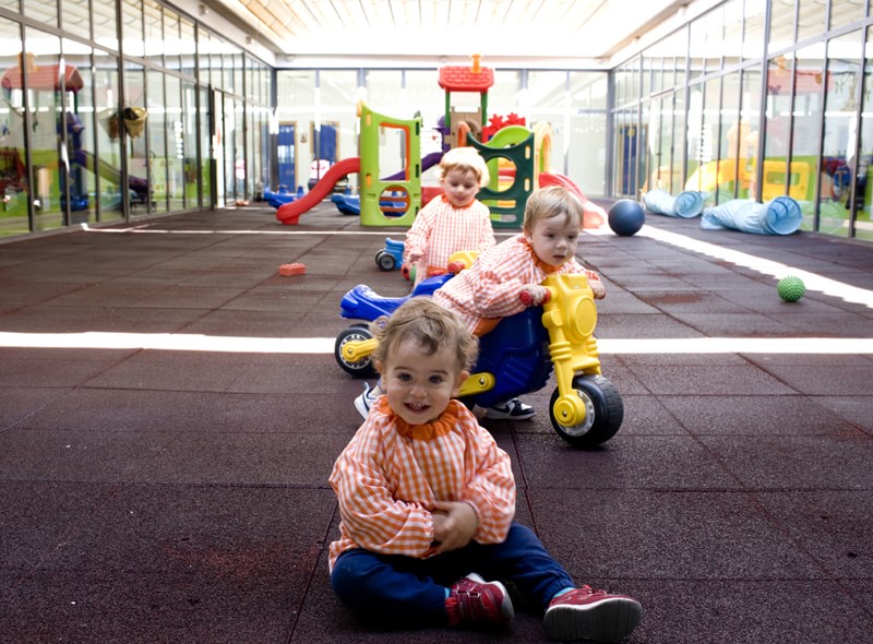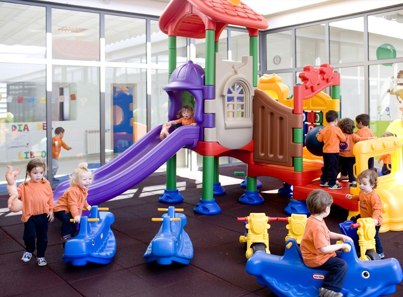 Los alumnos de la Escuela Infantil Municipal de Loriguilla, salen a este patio en sus ratos de recreo, donde pueden disfrutar de motos, pelotas y balones, balancines y de un equipamiento compuesto por plataformas y un tobogán de reciente adquisición.